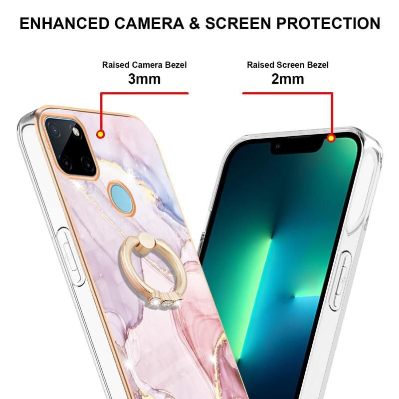 Θήκη τηλεφώνου Realme C21Y Electroplating Marble Pattern IMD TPU με Δακτύλιο Στήριξης (Μωβ 001)