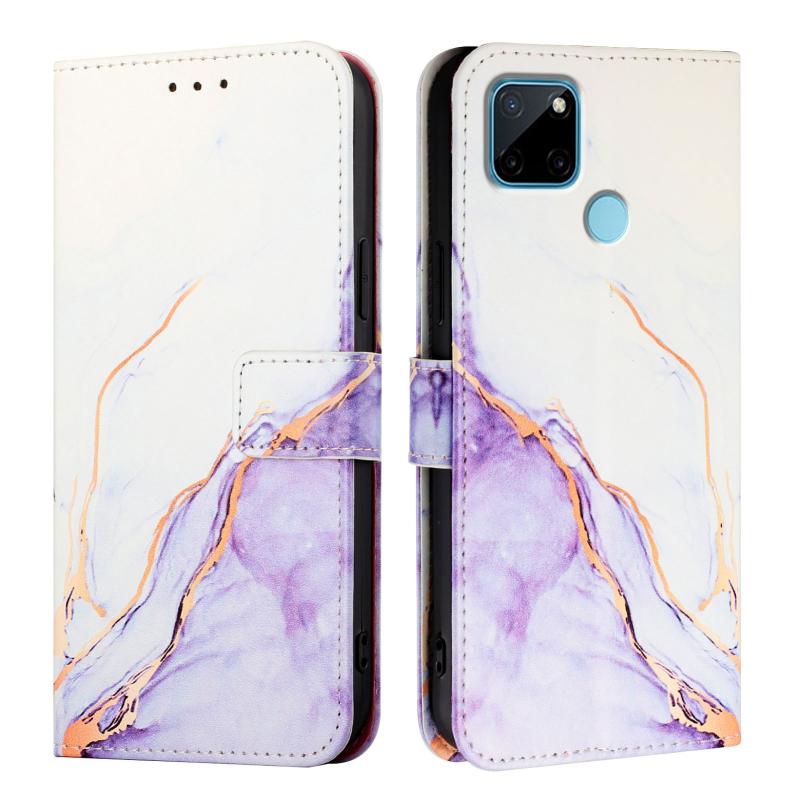 For Realme C21Y PT003 Marble Pattern Flip Leather Phone Case(White Purple)