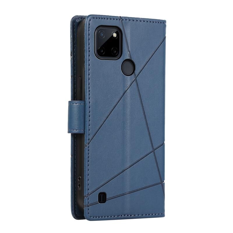 For Realme C21Y PU Genuine Leather Texture Embossed Line Phone Case(Blue)