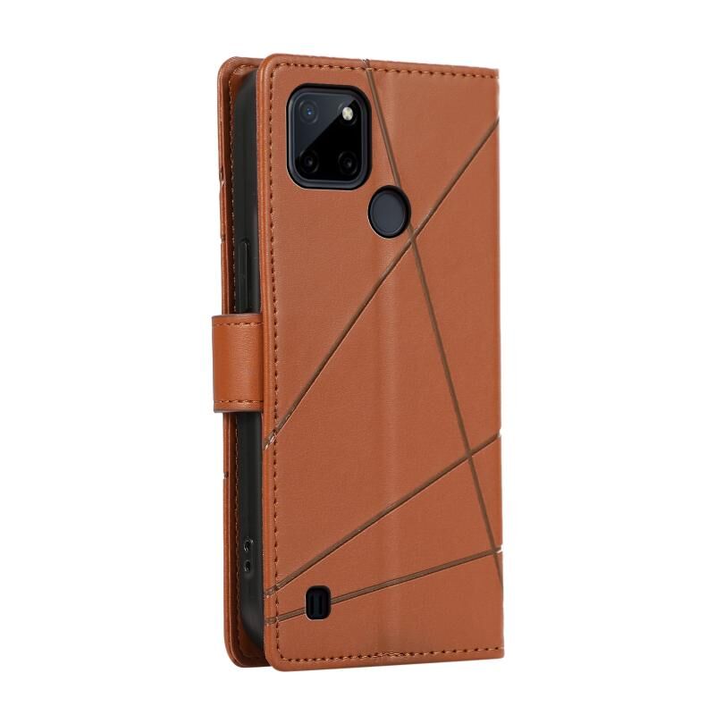 For Realme C21Y PU Genuine Leather Texture Embossed Line Phone Case(Brown)