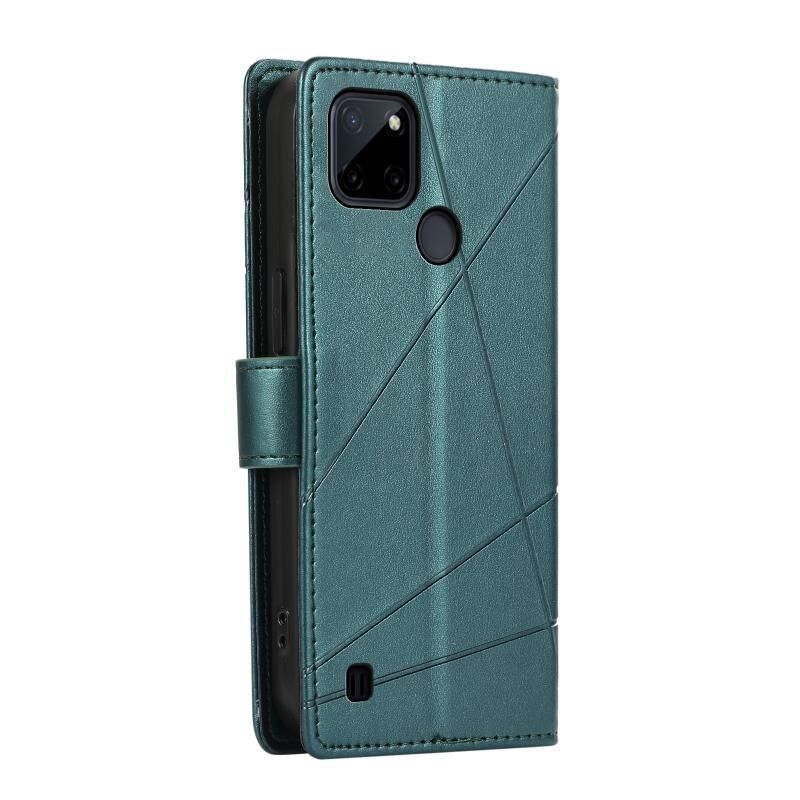 For Realme C21Y PU Genuine Leather Texture Embossed Line Phone Case(Green)