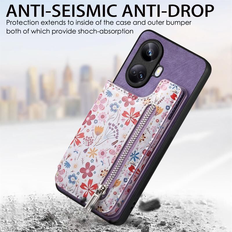 Για Realme C21Y Ρετρό ζωγραφισμένο φερμουάρ πορτοφόλι πίσω υπόθεση τηλεφώνου (μοβ)