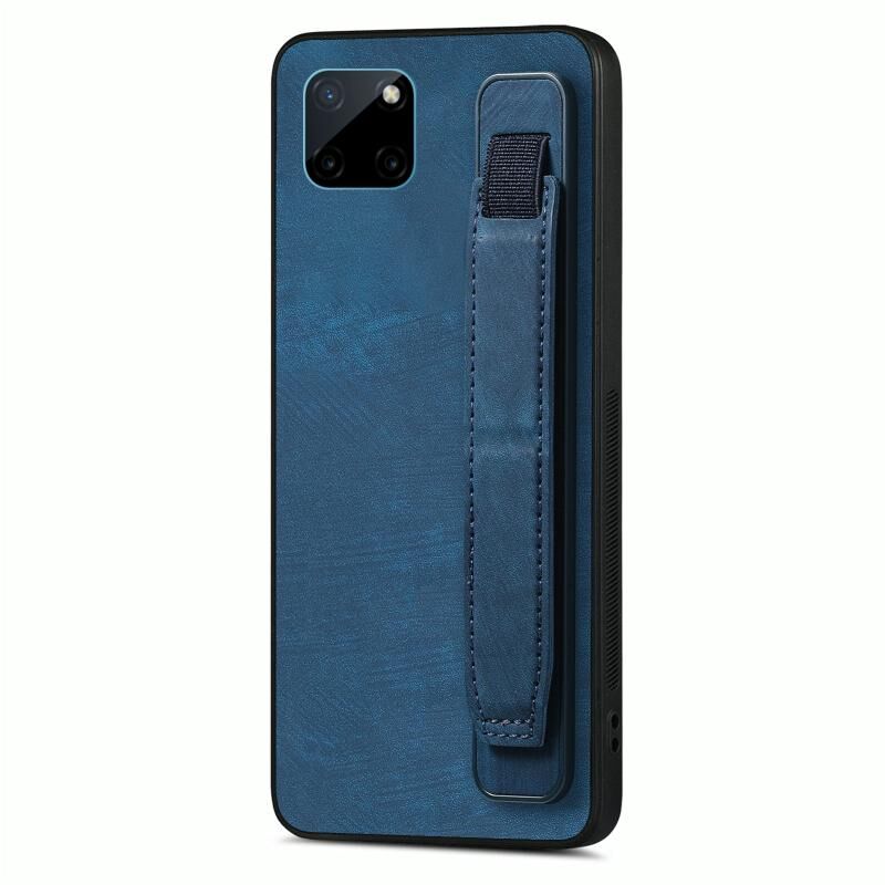 For Realme C21Y Retro Wristband Holder Leather Back Phone Case(Blue)