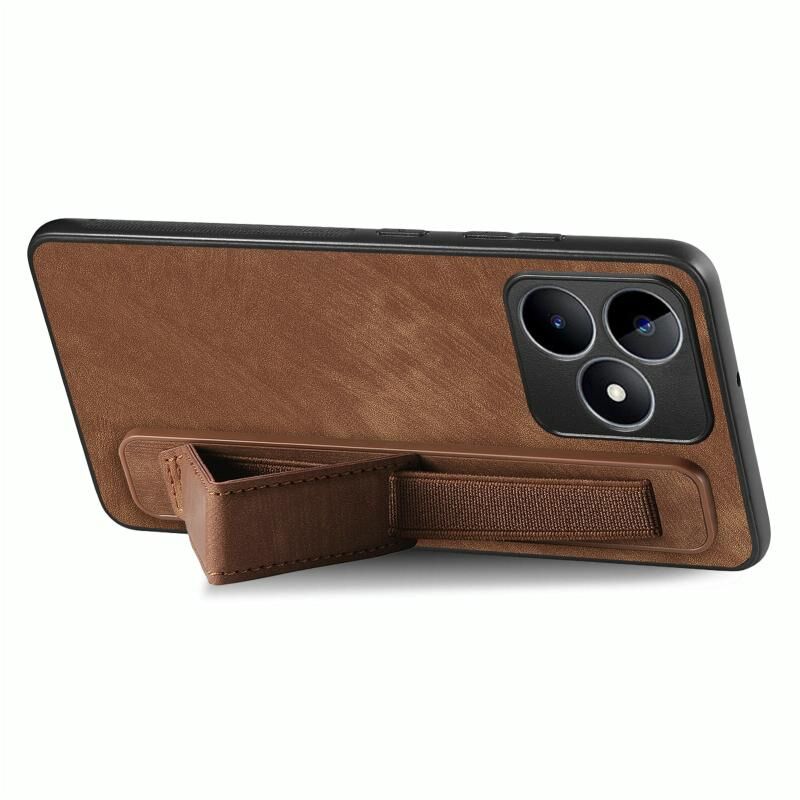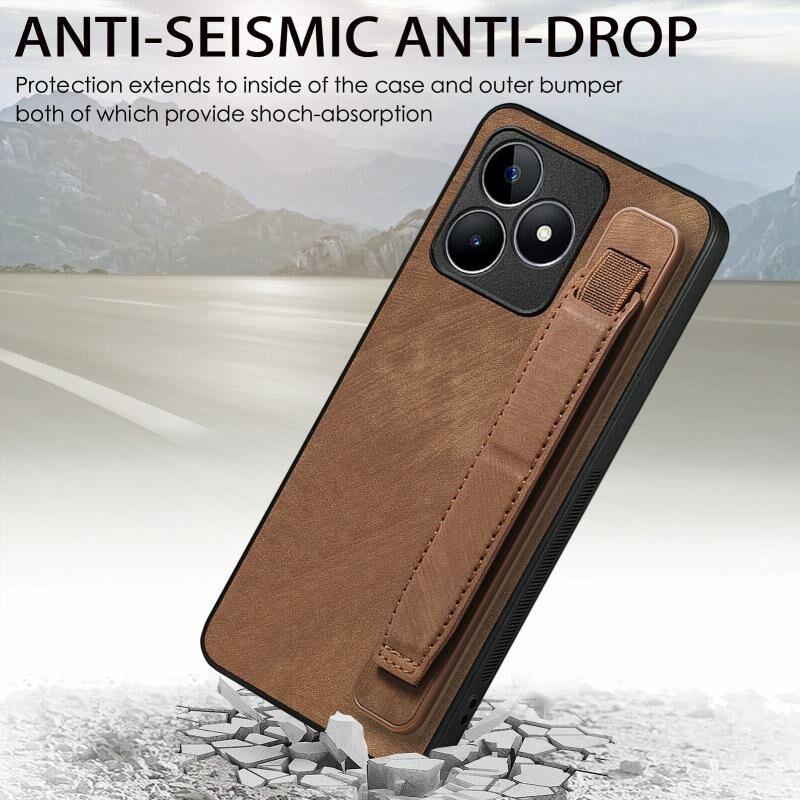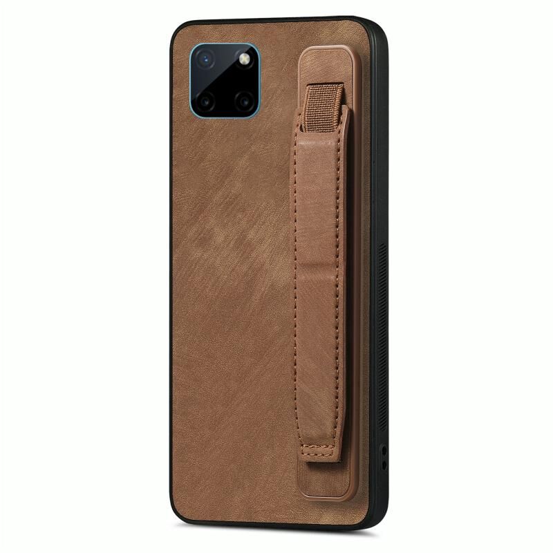 For Realme C21Y Retro Wristband Holder Leather Back Phone Case(Brown)
