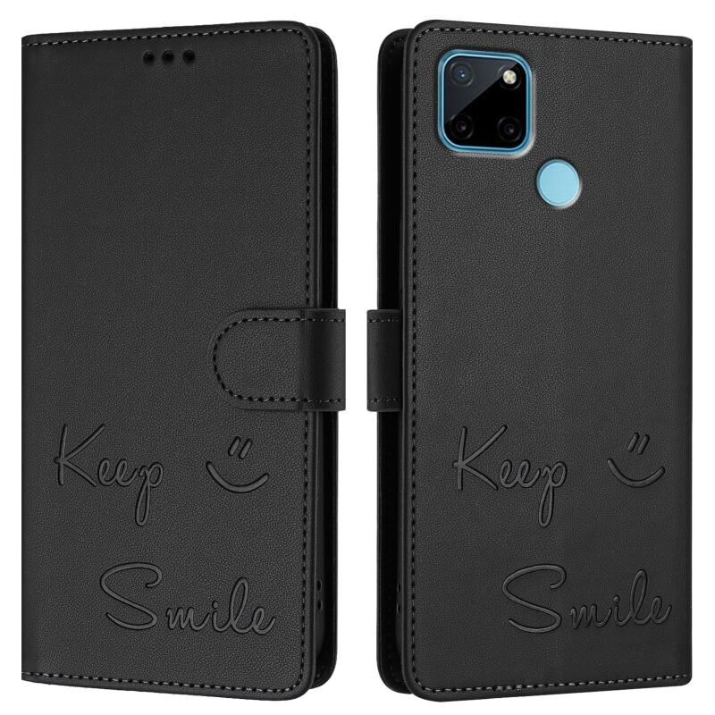 Για Realme C21Y Smile ανάγλυφο RFID δερμάτινη θήκη τηλεφώνου (Μαύρο)