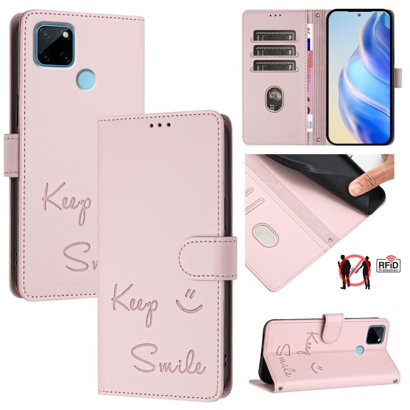 Για Realme C21Y Smile ανάγλυφο RFID δερμάτινη θήκη τηλεφώνου (ροζ)