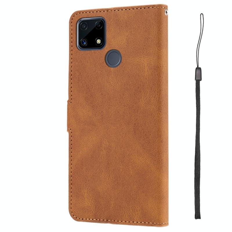 Θήκη τηλεφώνου από δέρμα μοσχαριού με φανταστική υφή (καφέ) για Realme C25 / C15 / C12.