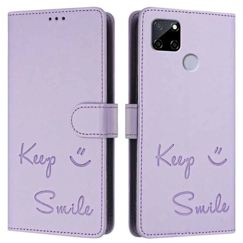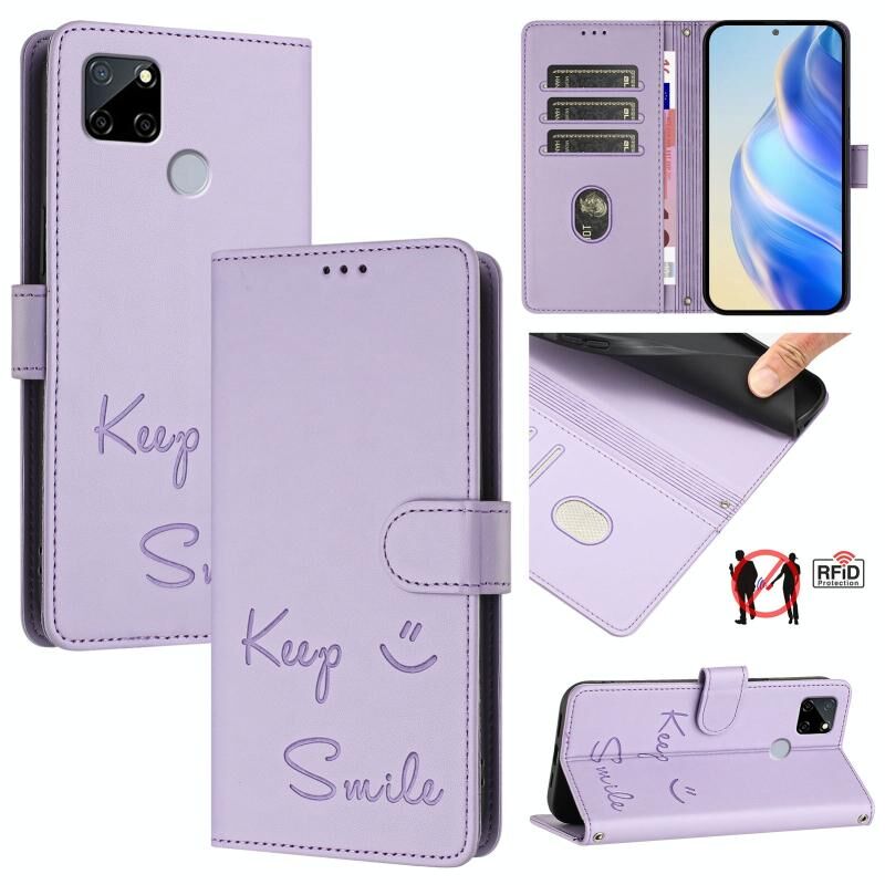 Για Realme C25 / C15 / C12 Smile ανάγλυφο RFID δερμάτινη θήκη τηλεφώνου (ανοιχτό μοβ)