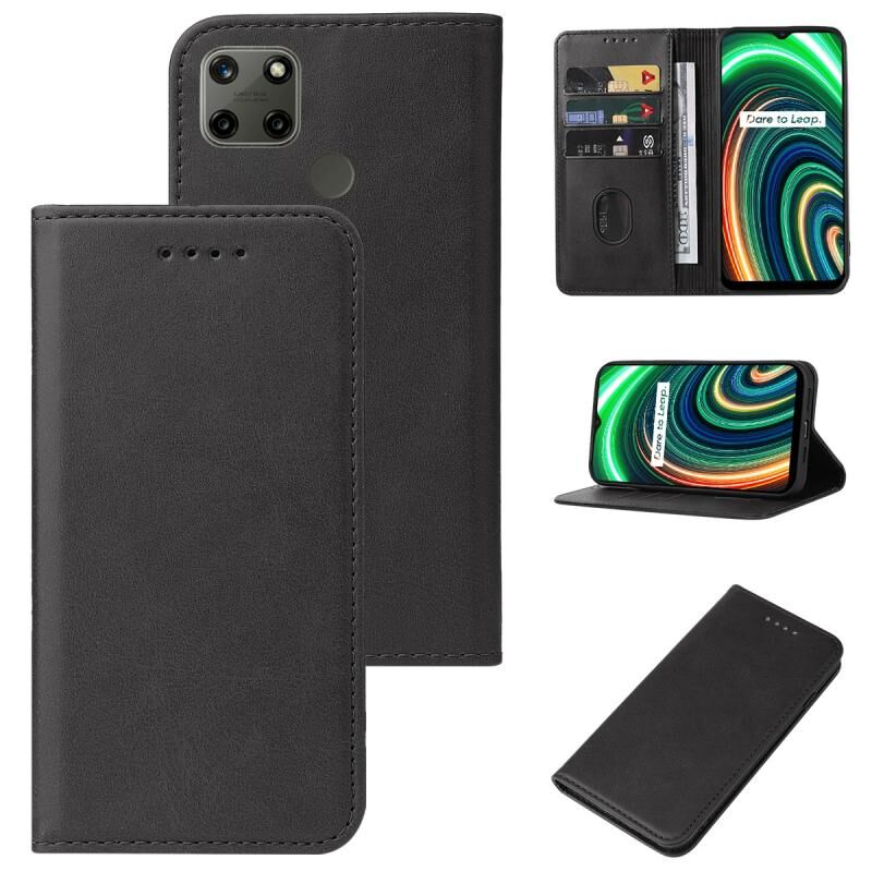 Για Realme C25Y Μαγνητικό κλείσιμο δερμάτινη θήκη τηλεφώνου (Μαύρο)