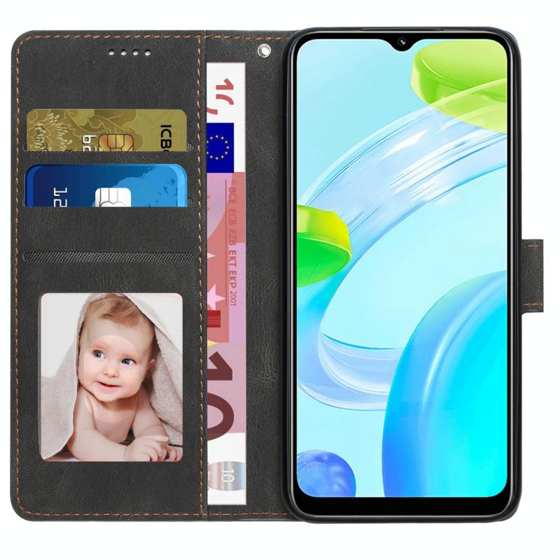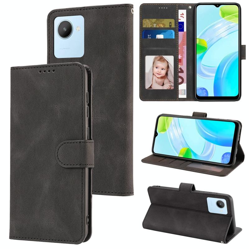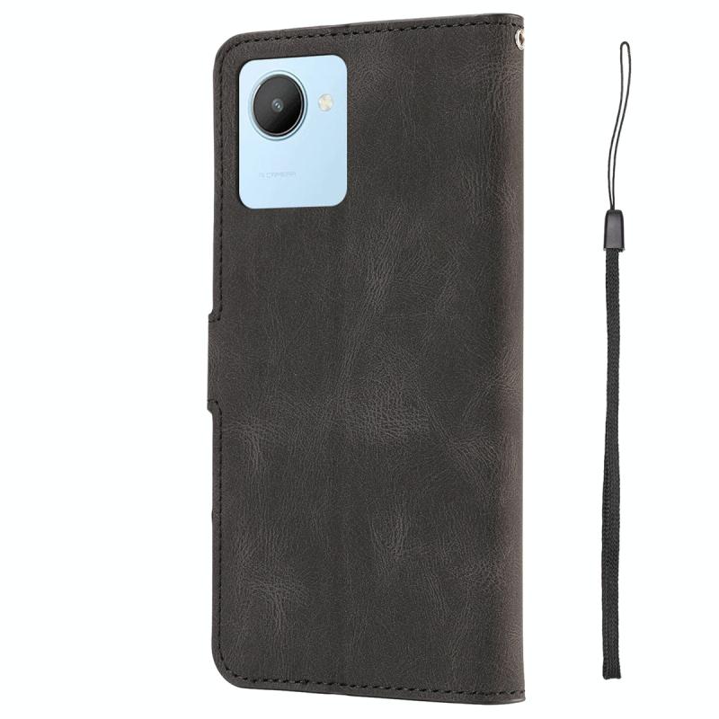 Θήκη τηλεφώνου από δέρμα μοσχαριού με φανταστική υφή και αίσθηση (Μαύρο) για Realme C30 4G / C30s / Narzo 50i Prime.