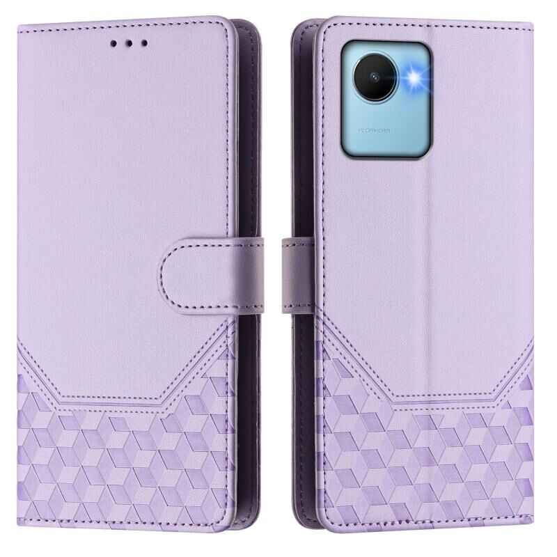 Για Realme C30 4G / C30s / Narzo 50i Prime Honeycomb ανάγλυφη RFID δερμάτινη θήκη τηλεφώνου (ανοιχτό μοβ)