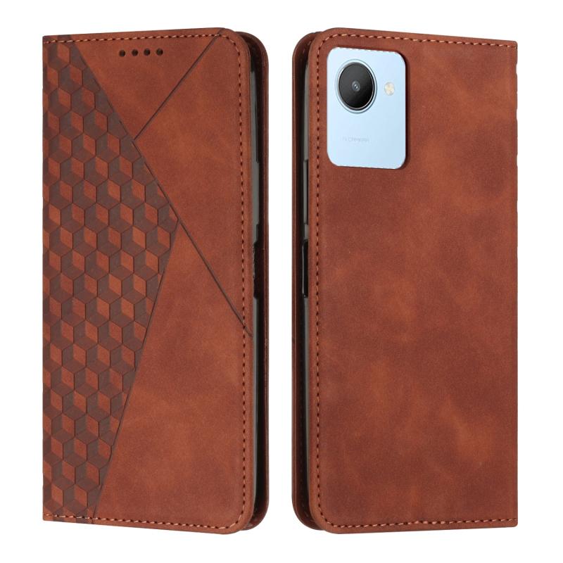 For Realme C30 4G Diamond Splicing Skin Feel Magnetic Leather Phone Case(Brown)