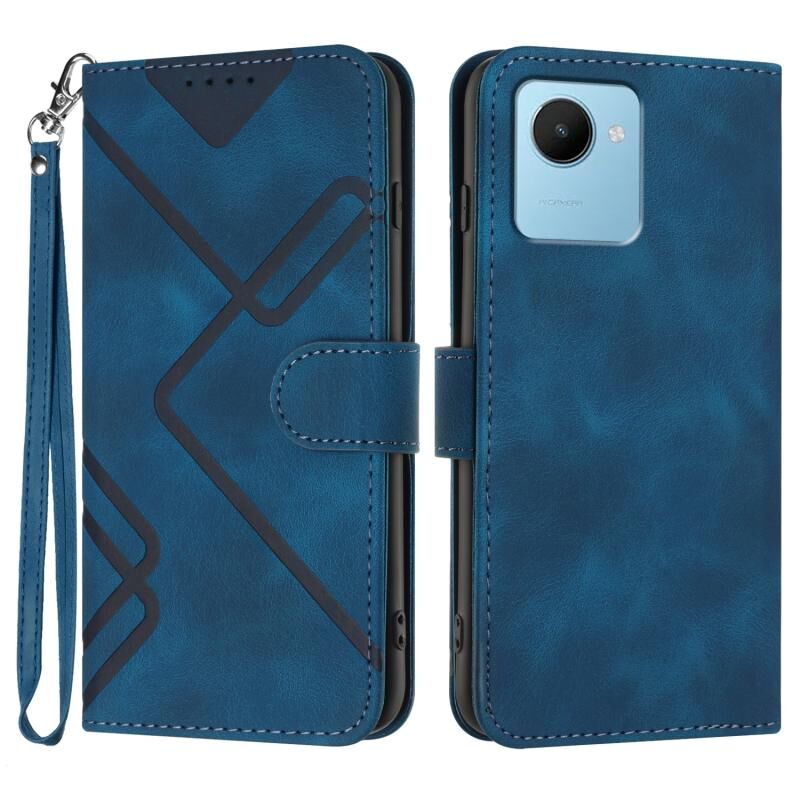 Για Realme C30 4G/Narzo 50i Prime/C30s Line Pattern Skin Feel Leather Phone Case (Royal Blue)