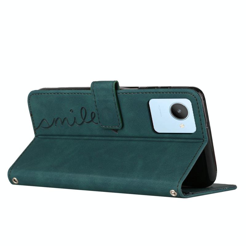 For Realme C30 4G Skin Feel Heart Pattern Leather Phone Case with Lanyard(Green)