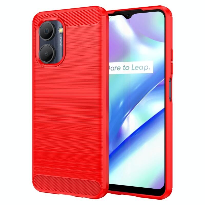 Για Realme C30 βουρτσισμένη υφή Carbon Fiber TPU τηλέφωνο υπόθεση (κόκκινο)