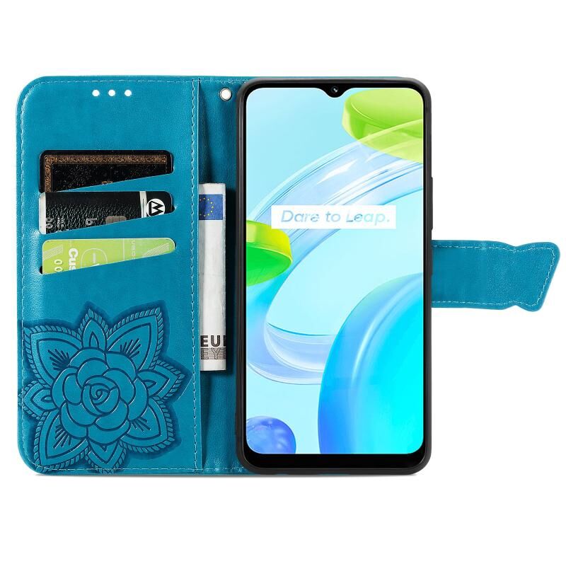 Θήκη τηλεφώνου Realme C30 Butterfly Love Flower Embossed Flip Leather (Μαύρο)