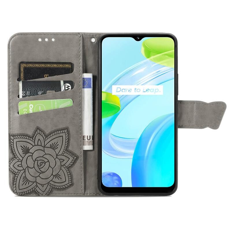 Θήκη τηλεφώνου Realme C30 Butterfly Love Flower Embossed Flip Leather (Μαύρο)