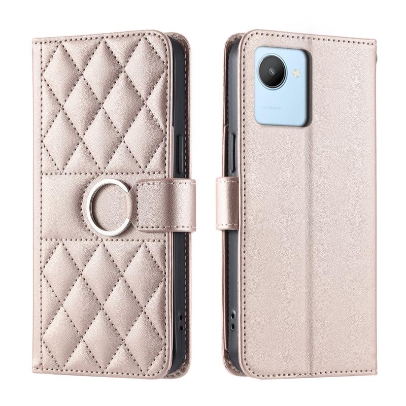 For Realme C30 / C30S Ring Buckle Rhombic Leather Phone Case(Rose Gold)
