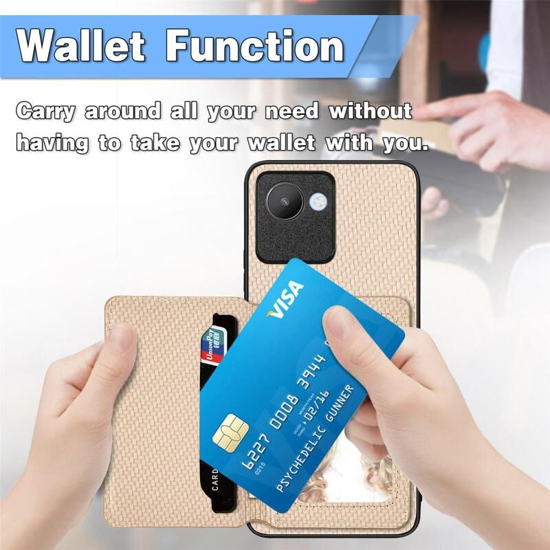For Realme C30 Carbon Fiber Magnetic Card Bag Phone Case(Brown)
