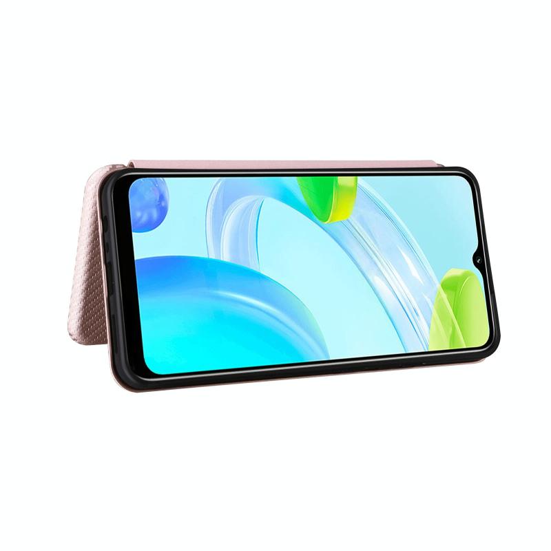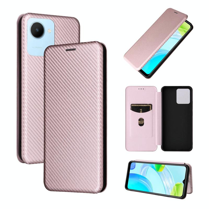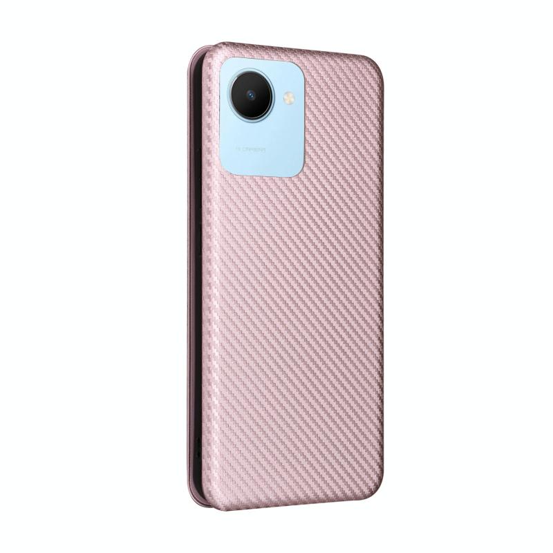 For Realme C30 Carbon Fiber Texture Flip Leather Phone Case(Pink)