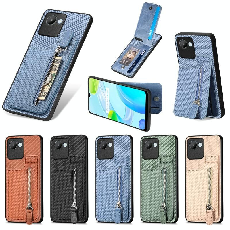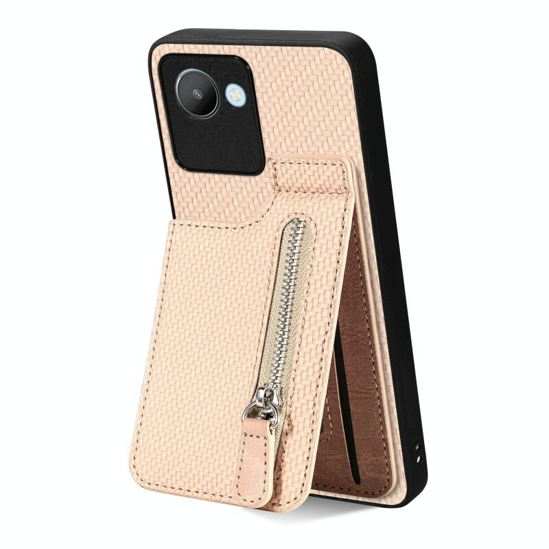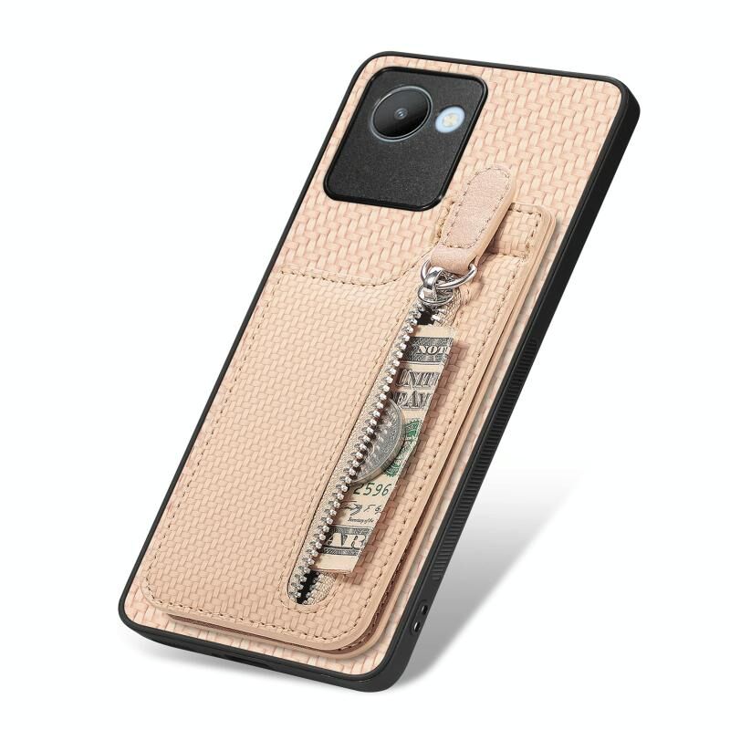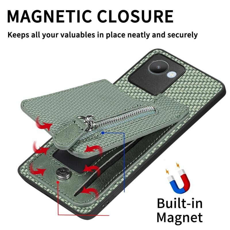 Για Realme C30 Carbon Fiber Κάθετη Flip φερμουάρ τηλέφωνο υπόθεση (χακί)