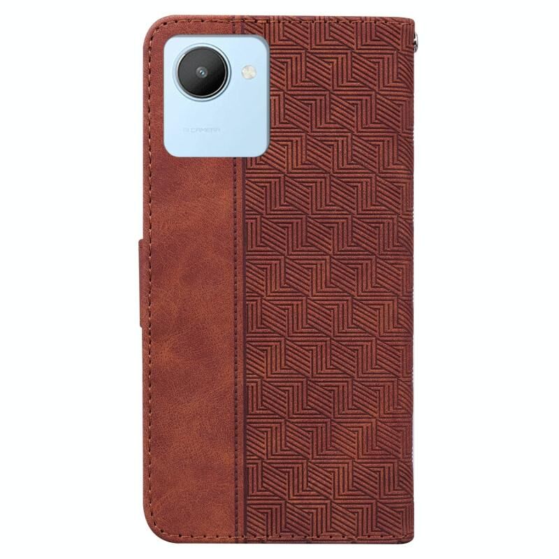 Για Realme C30 Γεωμετρική ανάγλυφη θήκη τηλεφώνου από δέρμα (καφέ)