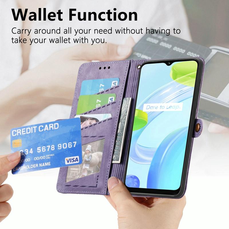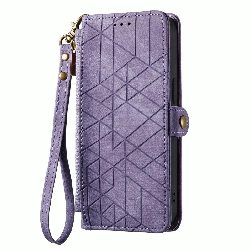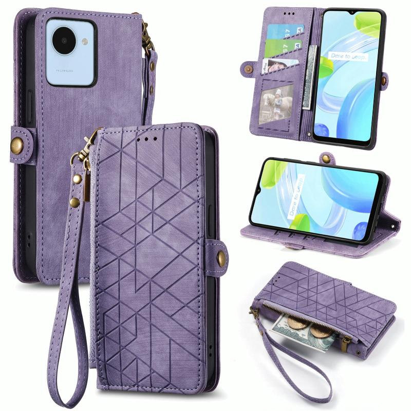 For Realme C30 Geometric Zipper Wallet Side Buckle Leather Phone Case(Purple)