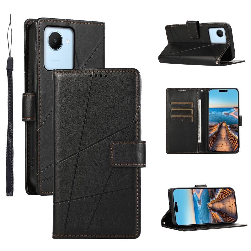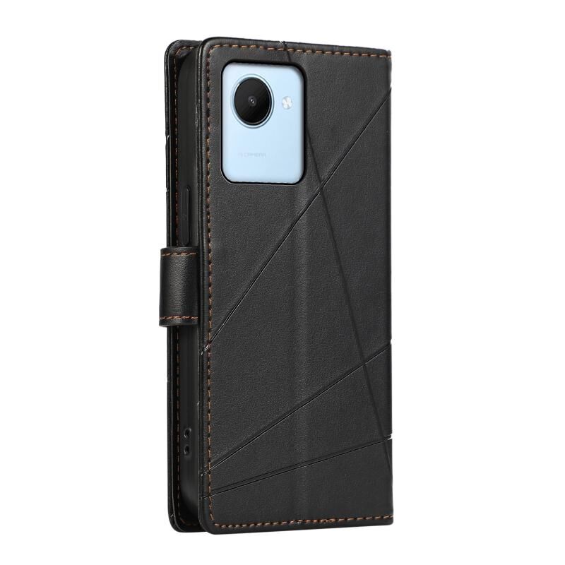 For Realme C30 PU Genuine Leather Texture Embossed Line Phone Case(Black)