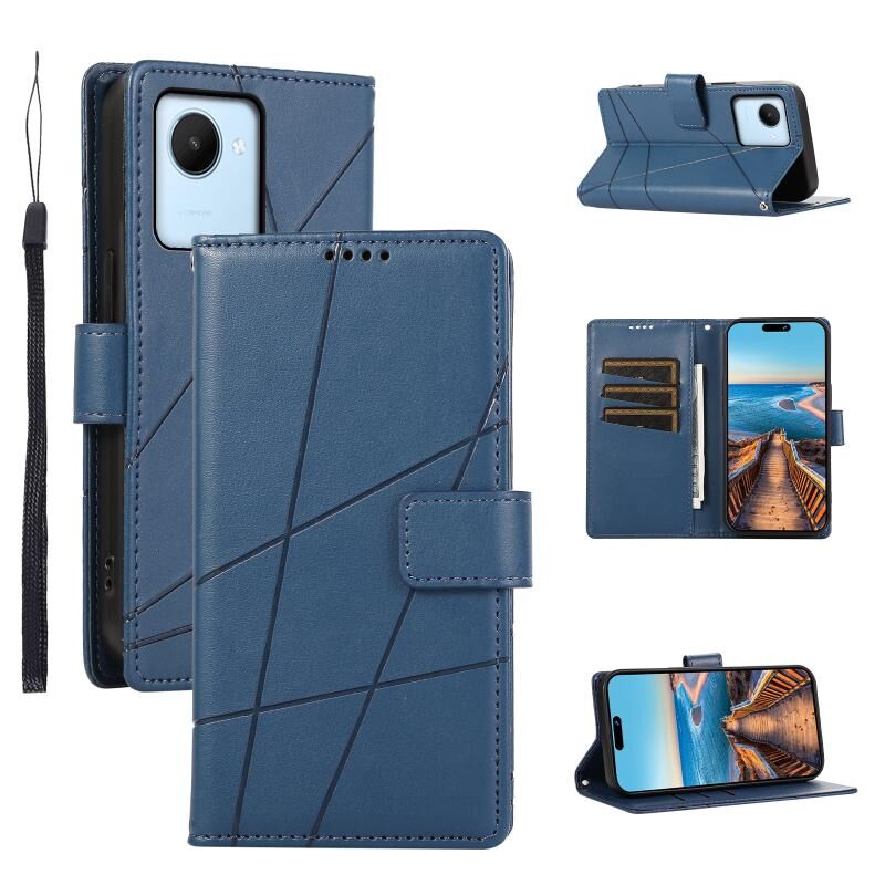 For Realme C30 PU Genuine Leather Texture Embossed Line Phone Case(Blue)