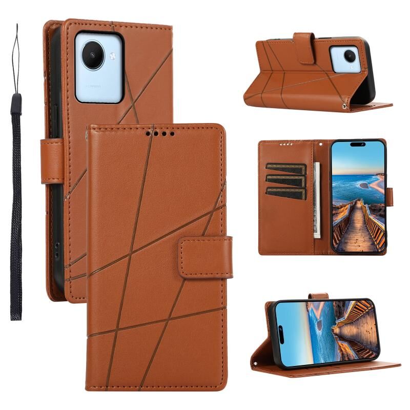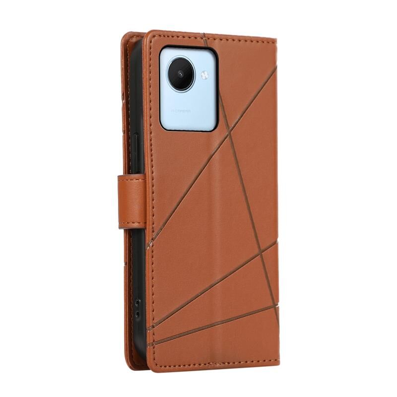 For Realme C30 PU Genuine Leather Texture Embossed Line Phone Case(Brown)