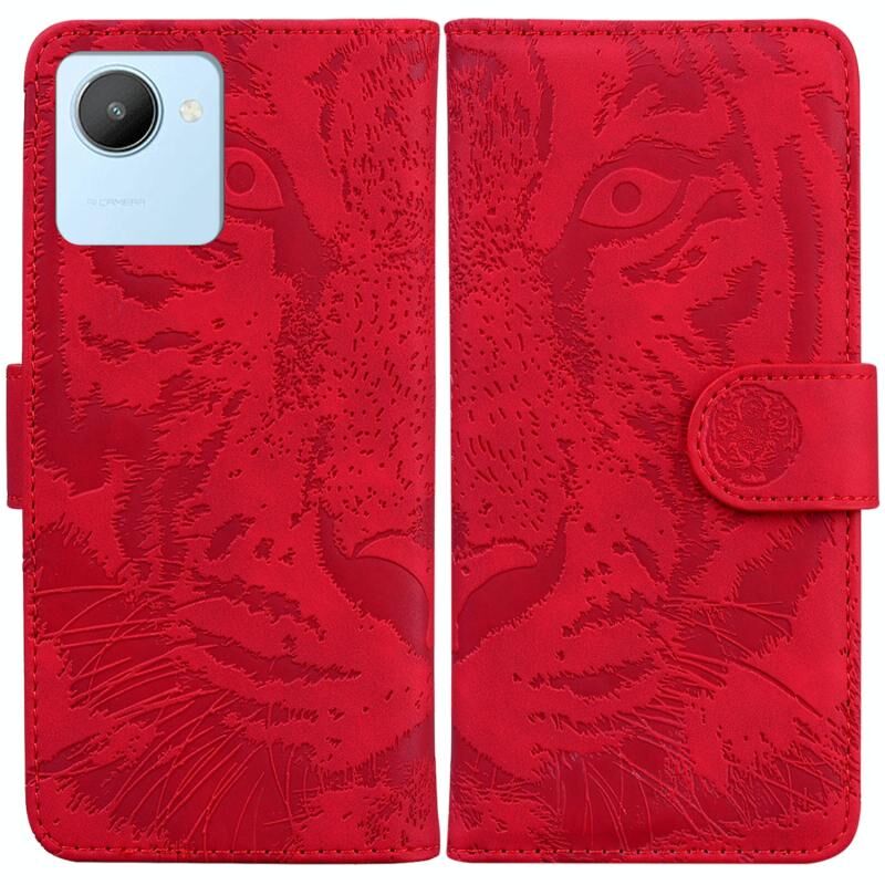 Για Realme C30 Tiger ανάγλυφο μοτίβο Flip υπόθεση τηλεφώνου δέρμα (κόκκινο)