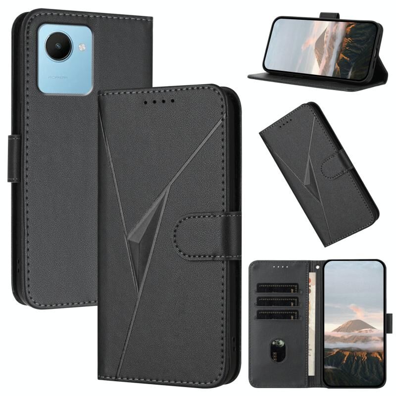 Για Realme C30 Τρίγωνο μοτίβο αγκράφα κούμπωμα δερμάτινη θήκη τηλεφώνου (μαύρο)