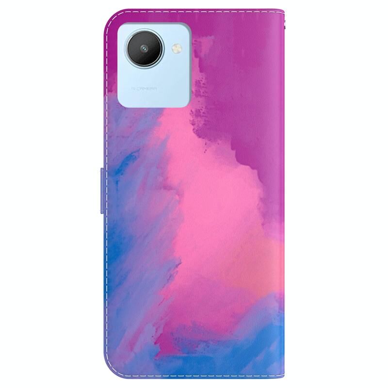 Για Realme C30 Υδατογραφία μοτίβο Flip υπόθεση τηλεφώνου δέρμα (μοβ κόκκινο)