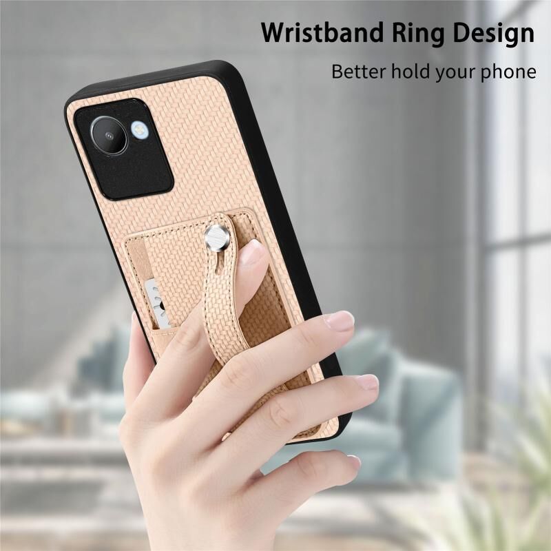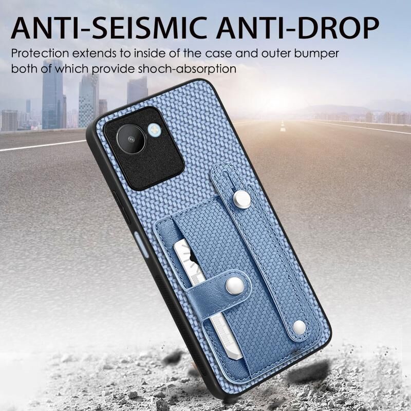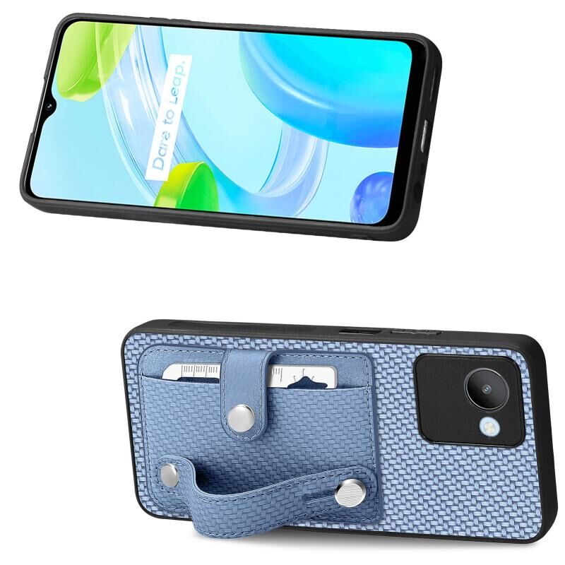 Για Realme C30 Wristband Kickstand κάρτα πορτοφόλι πίσω κάλυμμα τηλεφώνου υπόθεση με εργαλείο μαχαίρι (μπλε)