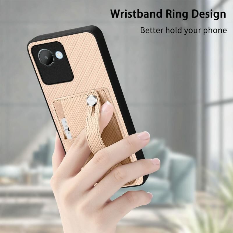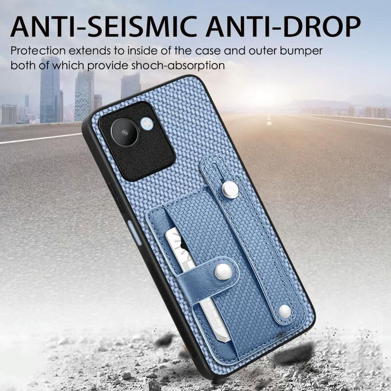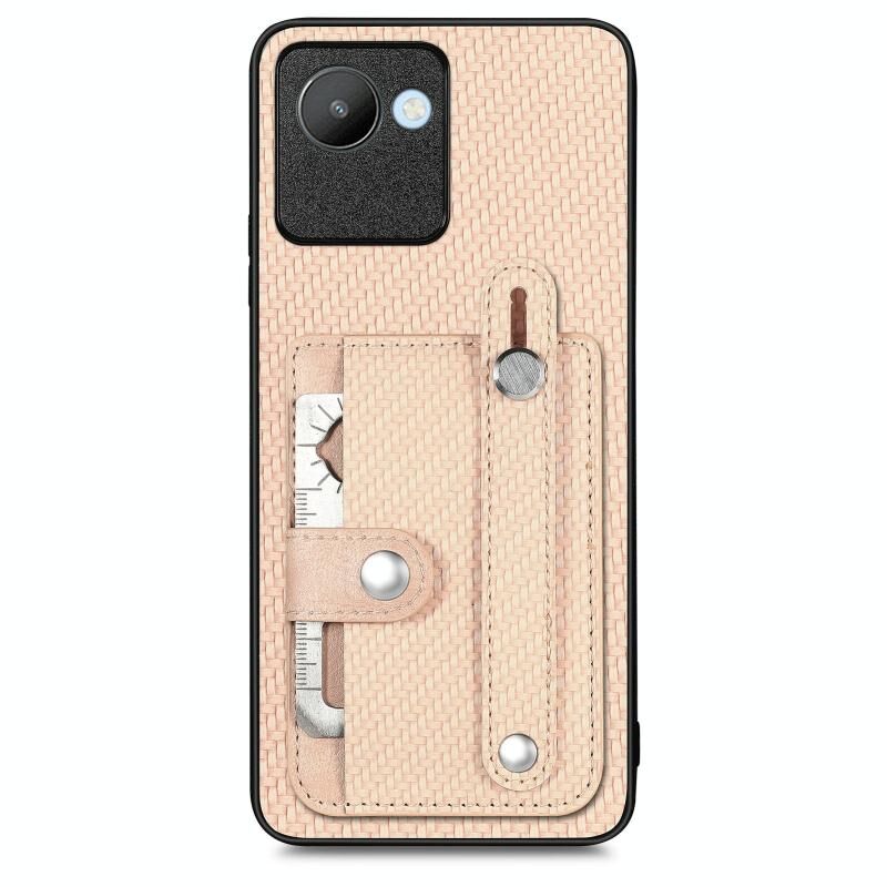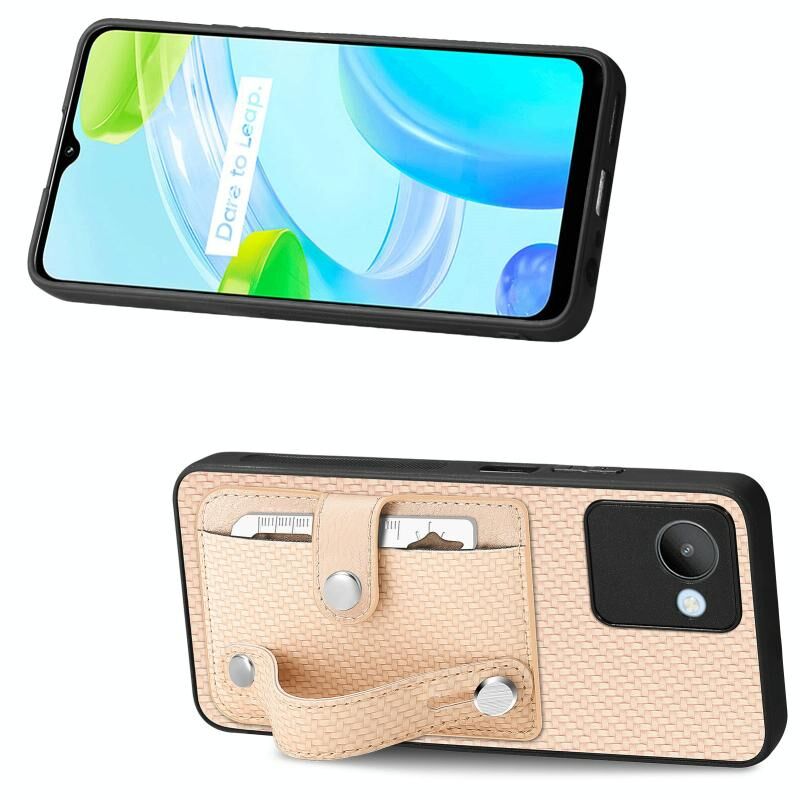 Για Realme C30 Wristband Kickstand κάρτα πορτοφόλι πίσω κάλυμμα τηλεφώνου υπόθεση με εργαλείο μαχαίρι (χακί)