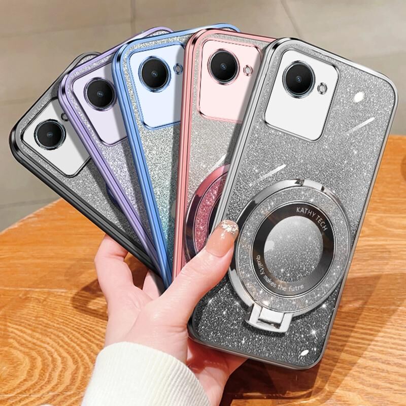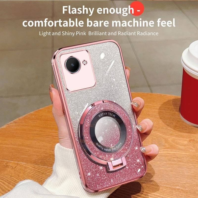 For Realme C30S / C30 Plated Gradient Glitter Round Holder TPU Phone Case(Pink)