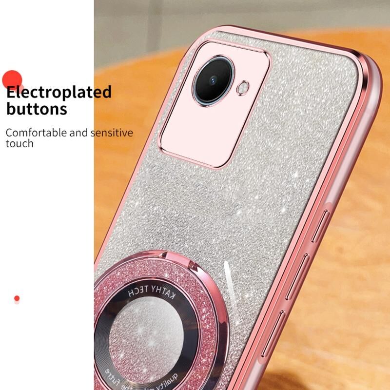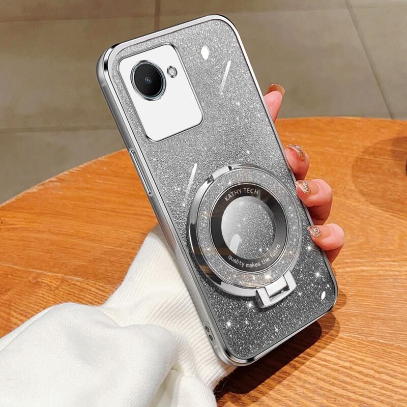 For Realme C30S / C30 Plated Gradient Glitter Round Holder TPU Phone Case(Silver)