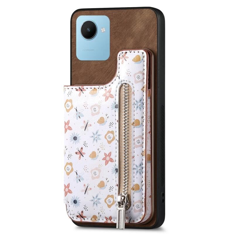 Για Realme C30S Ρετρό ζωγραφισμένο φερμουάρ πορτοφόλι πίσω υπόθεση τηλεφώνου (καφέ)