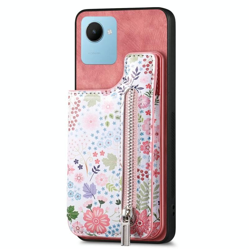 Για Realme C30S Ρετρό ζωγραφισμένο φερμουάρ πορτοφόλι πίσω υπόθεση τηλεφώνου (ροζ)