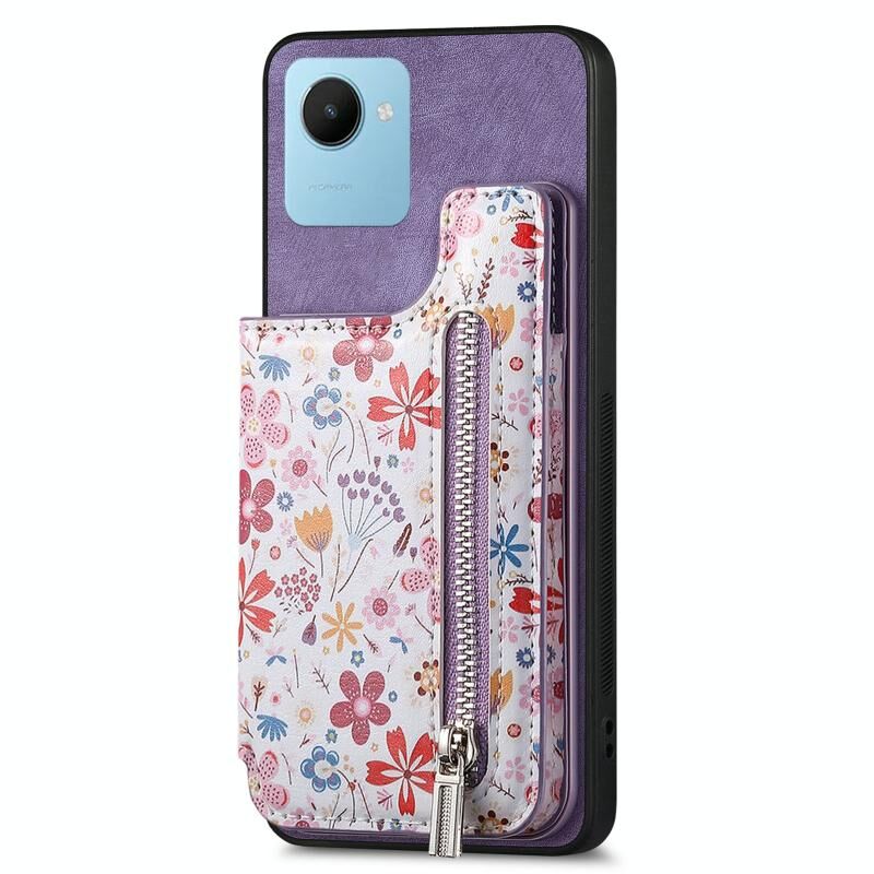 Για Realme C30S Ρετρό ζωγραφισμένο φερμουάρ πορτοφόλι πίσω υπόθεση τηλεφώνου (μωβ)
