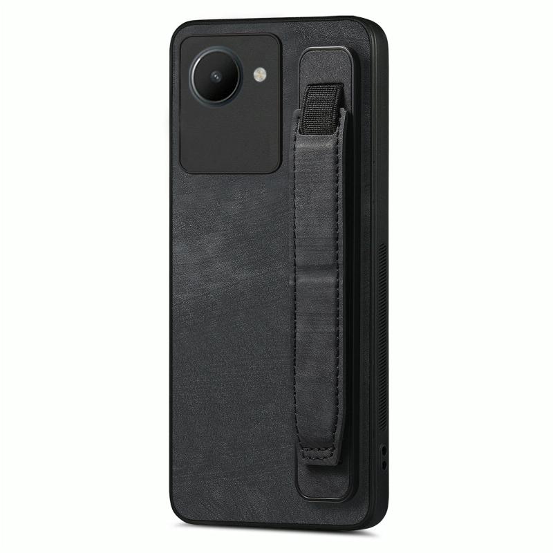 For Realme C30S Retro Wristband Holder Leather Back Phone Case(Black)