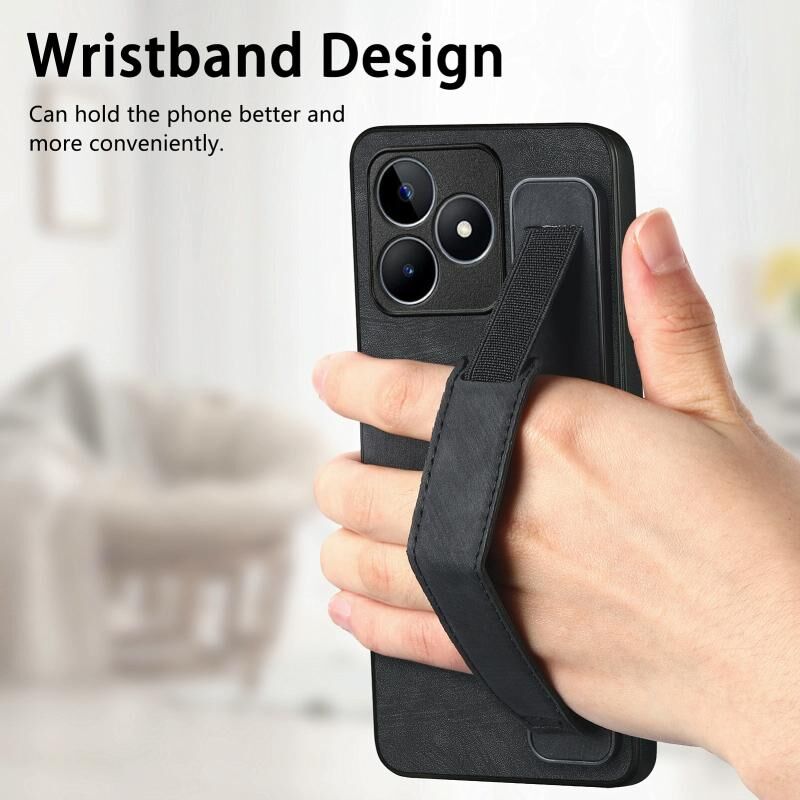 Θήκη τηλεφώνου Realme C30S Retro με λουράκι καρπού από δέρμα (Μαύρο)