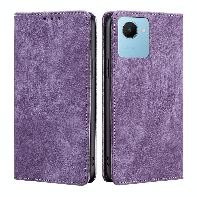 Για Realme C30s RFID Anti-theft βούρτσα μαγνητική δερμάτινη θήκη τηλεφώνου (μωβ)