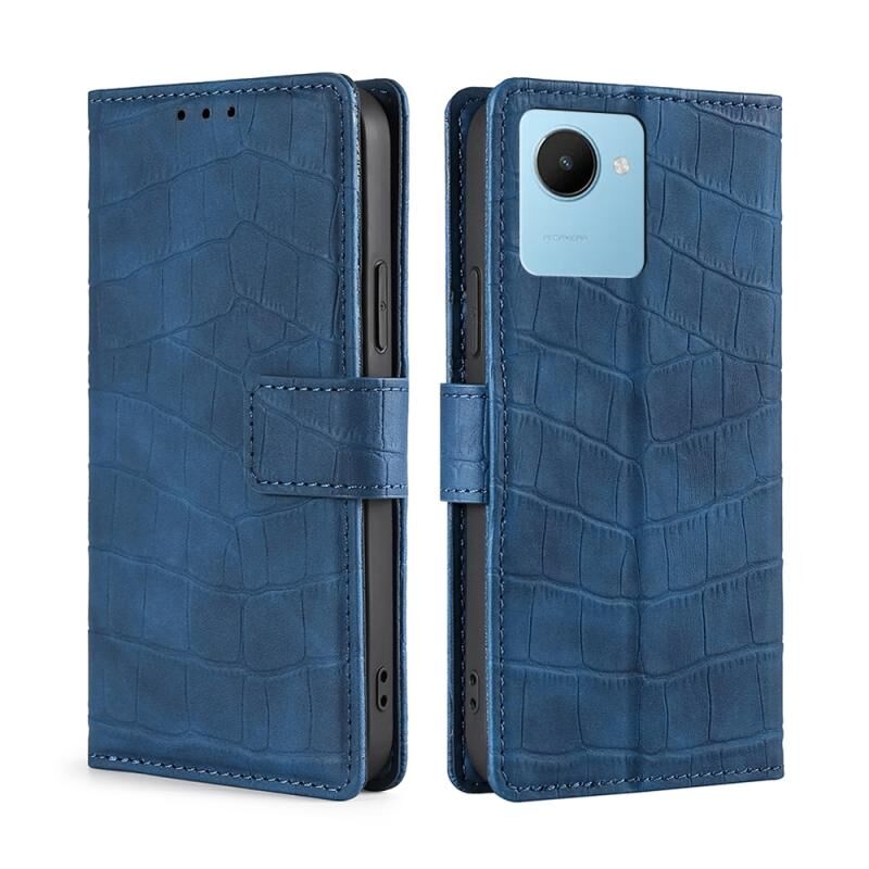 Θήκη τηλεφώνου δερμάτινη με μαγνητικό κούμπωμα και υφή κροκόδειλου για Realme C30s (Μπλε)