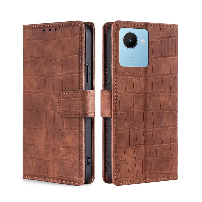 Θήκη τηλεφώνου δερμάτινη με μαγνητικό κούμπωμα και υφή κροκόδειλου για Realme C30s (Καφέ)