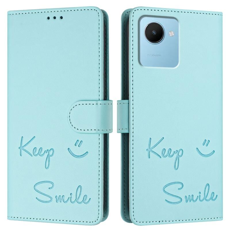 Για Realme C30s Χαμόγελο ανάγλυφο RFID δερμάτινη θήκη τηλεφώνου (πράσινο της μέντας)