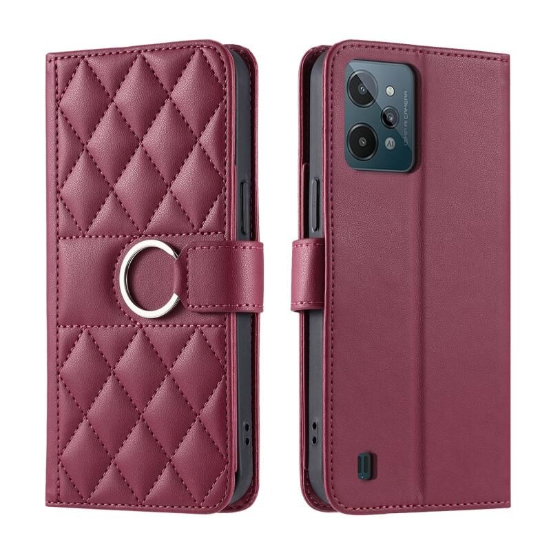 For Realme C31 4G Ring Buckle Rhombic Leather Phone Case(Red)