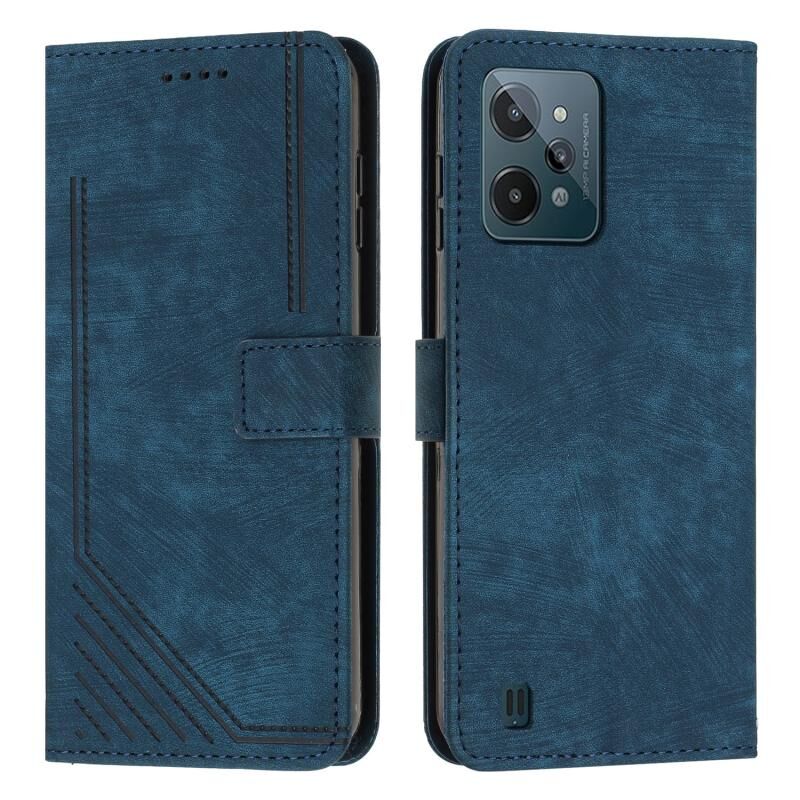 Για το Realme C31 4G δέρμα Feel Stripe μοτίβο δερμάτινη θήκη τηλεφώνου με κορδόνι (μπλε)