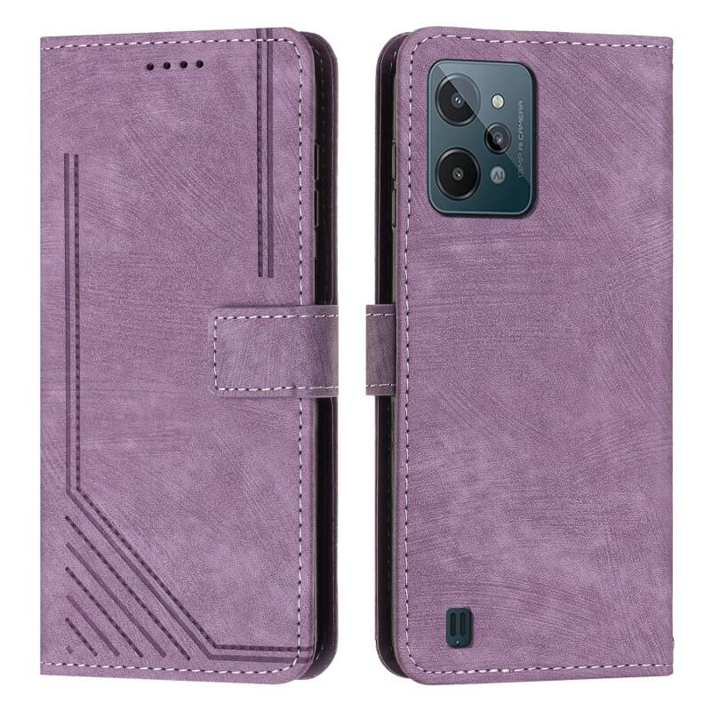 Για το Realme C31 4G δέρμα Feel Stripe μοτίβο δερμάτινη θήκη τηλεφώνου με κορδόνι (μωβ)