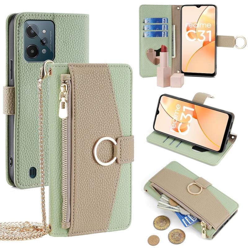 For Realme C31 Crossbody Litchi Texture Leather Phone Case(Green)